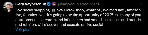 Live shopping isn't a passing trend — it's a genuine revolution in how people shop and connect with brands. As Gary Vaynerchuk put it in a recent tweet: "Live social shopping is going to be the opportunity of 2025."