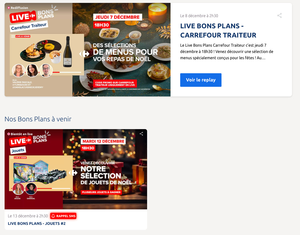 Multiple displays deployed on the Carrefour page
