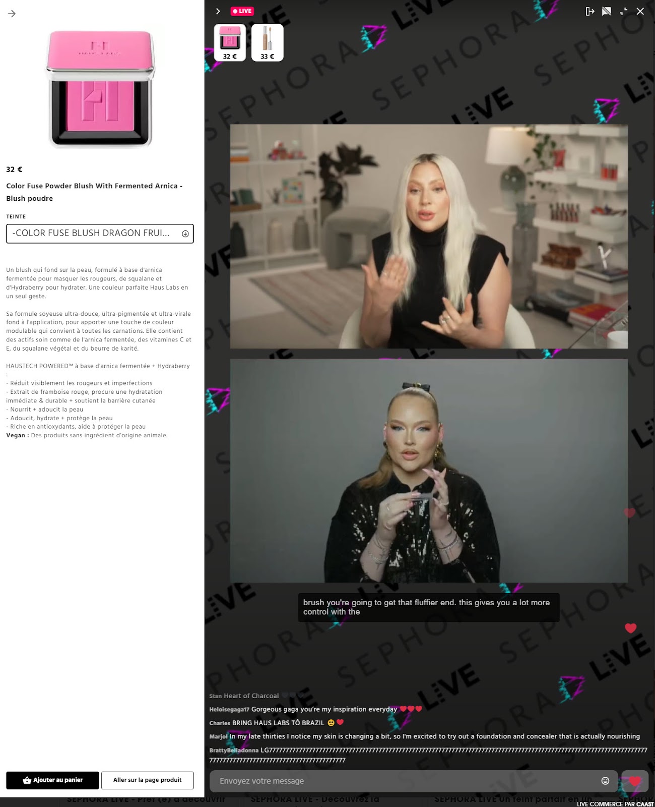 This live shopping event stood out for several reasons. First, Lady Gaga's presence brought an unmistakable energy to the session. Her global fame drew a massive audience and generated intense interest in the Haus Labs range — all the more so since the brand is sold exclusively at Sephora in Europe. Adding to that, NikkieTutorials — one of the most recognized beauty influencers in the world — brought an extra layer of depth to the event. Her makeup expertise and natural connection with viewers made the live even more engaging and informative.