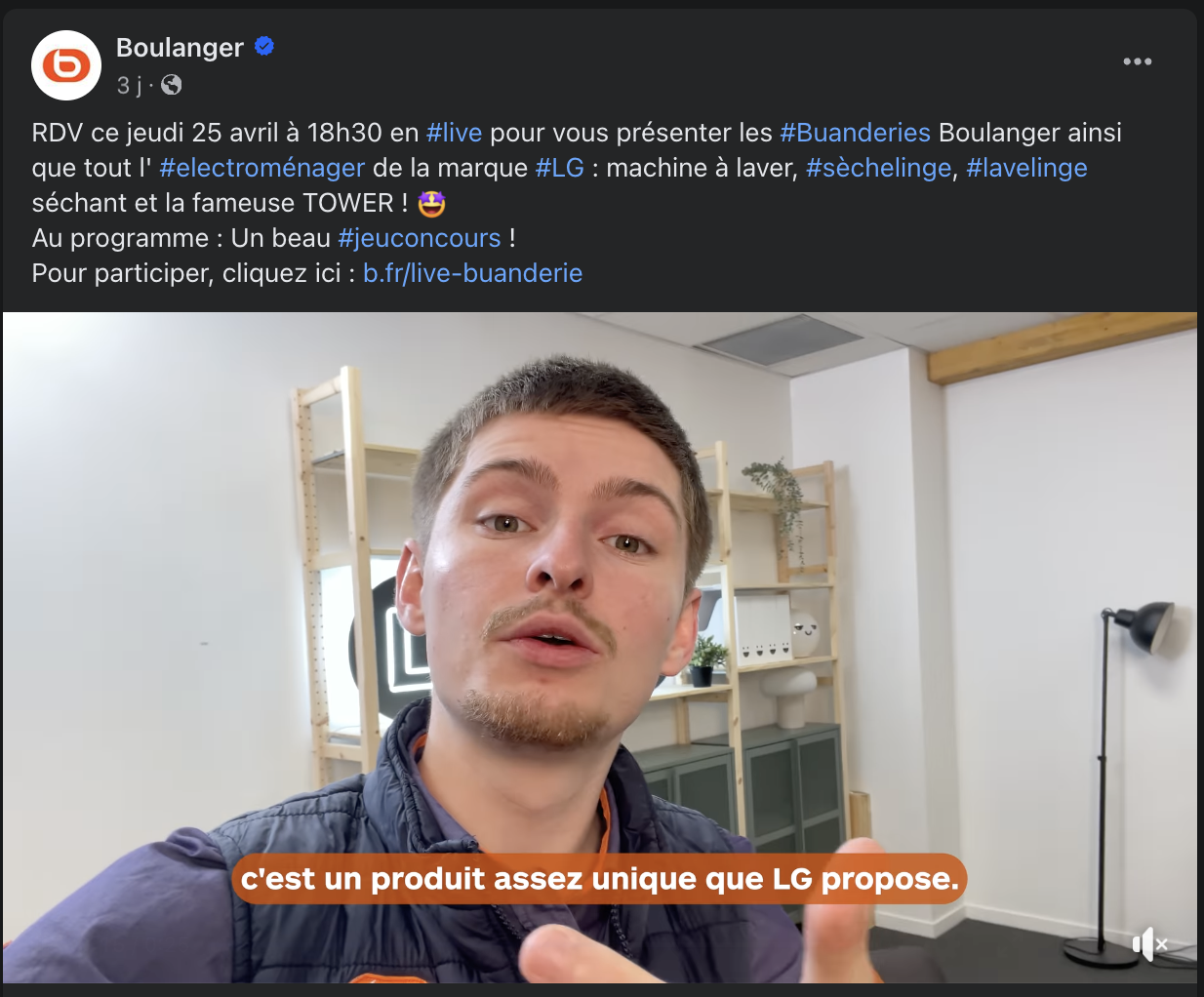 Boulanger ensures strong promotion for its Live Shopping events through consistency: the brand gives its customers a standing weekly appointment every Thursday evening, blending technical content with entertainment.