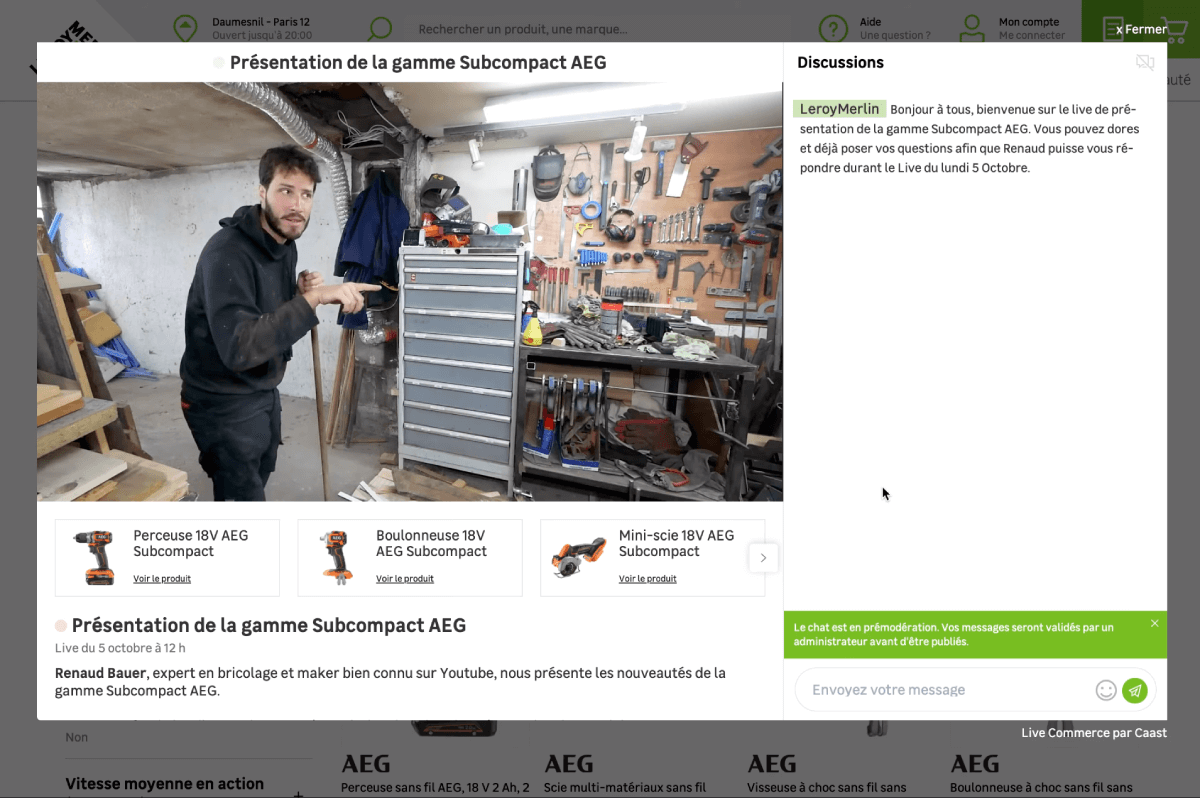 For example, by partnering with Renaud Bauer, a YouTube expert in welding, Leroy Merlin multiplied the number of visits fivefold during a live session and doubled its sales in the following 24 hours.